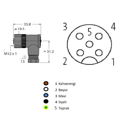 / M1205FA-PG7 M12 5Pin KONNEKTÖR FEMALE 90°